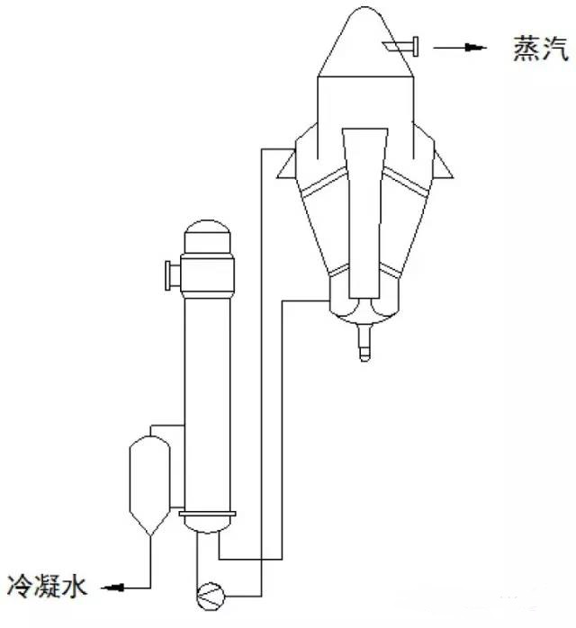 經過澄清的液體被強制循環泵輸送到換熱器繼續加熱,物料如此循環不斷蒸發濃縮或濃縮結晶。OSLO蒸發結晶器內的二次蒸汽經過分離器上部的分離和除沫裝置凈化后輸送到壓縮機,壓縮機把二次蒸汽壓縮后輸送到換熱器殼程用作蒸發器加熱蒸汽。實現熱能循環連續蒸發。