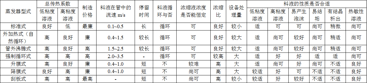 ①對于粘度大的物料,不宜選擇自然循環(huán)型,應(yīng)選擇強(qiáng)制循環(huán)型、回轉(zhuǎn)型或降膜式蒸發(fā)器;